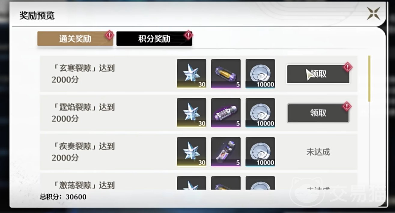 通过这样的战斗方式,即使用试用角色,第一天也能累积到30000分的奖励档次。随着后续关卡的开放,玩家可以领取更多的活动奖励。