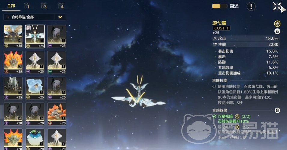 在声骸选择上,今汐适合装备浮星祛暗五件套,使用4-3-3-1-1的配置。这样的声骸配置就可以让今汐的衍射伤害得到较大的提高。声骸的主词条以暴击、攻击、暴击伤害为主,这些主词条能够显著提升今汐的输出能力,使她在战斗中更具优势。