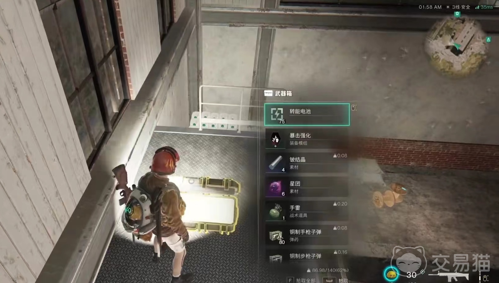 接下来先不要离开,直接跳到右前方的楼梯,沿着铁板路走到尽头,在这上面发现另外一个武器箱子,将它拿到之后,本次探索也就正式结束了。箱子里开出的物品比较丰富,包括暴击强化装备模组,多种素材子弹应有尽有。而且还能获得一个探索完成的成就东部铁路枢纽。