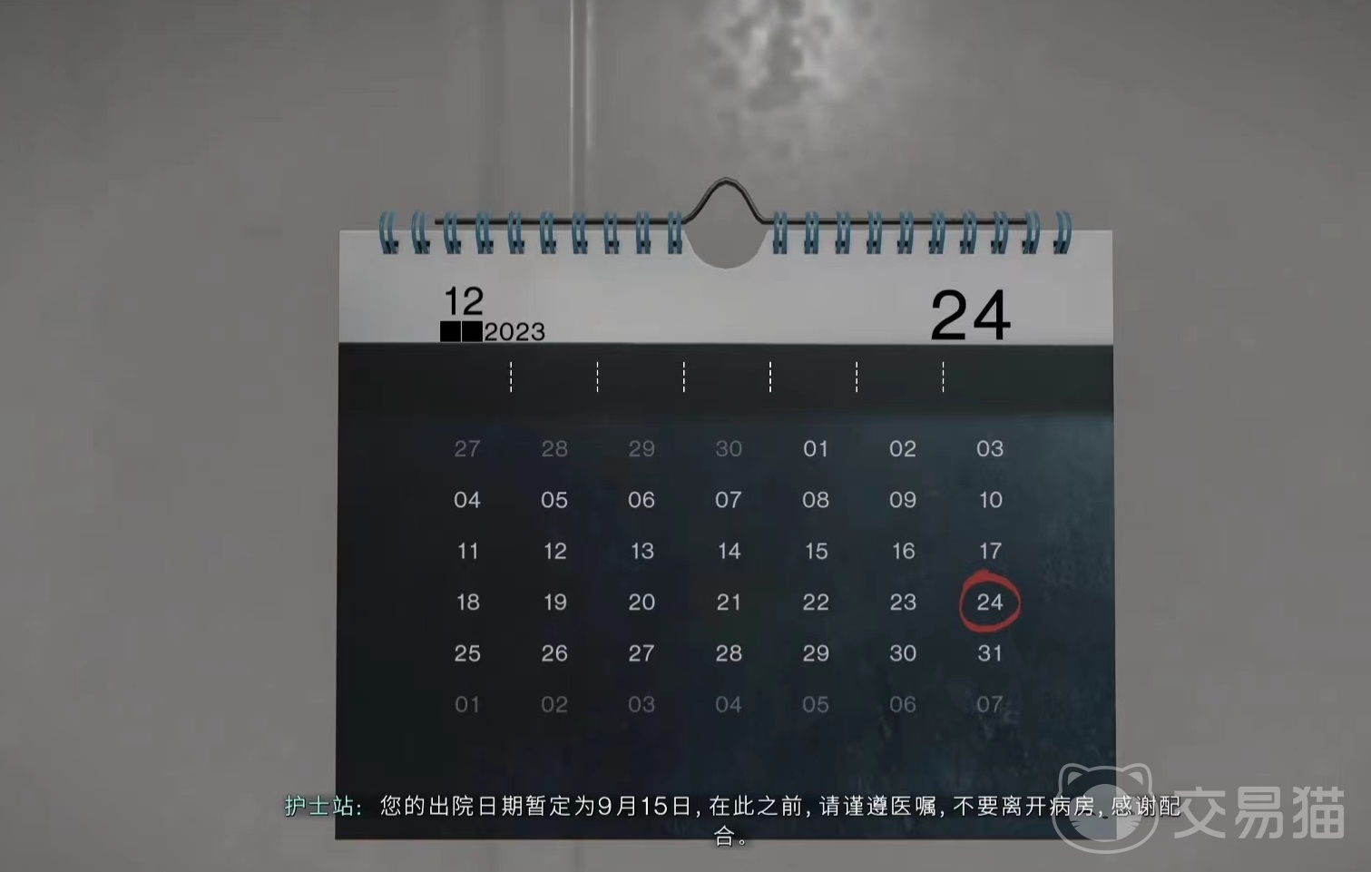 在地图中会看到一个日历,护士将出院日期定为9月15日,在此之前不能离开病房。玩家每切换一个房间,日历日期会产生变化,根据当前游戏中的日期去打开相应数量房间。经过一番操作,达到指定日期后可以出院了。这里唯一需要注意的就是不断去开启大门,好在每一个场景中都有日历,大家可以随时查看当前日期及时调整。出院之后前往保罗处进行对话,整个任务就完成了。