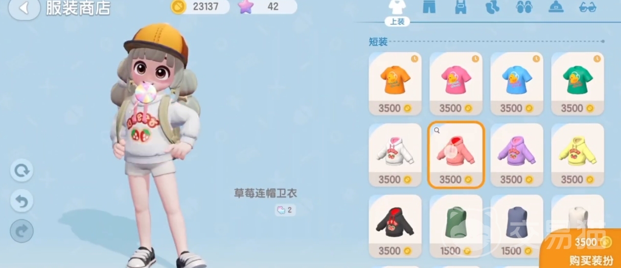 要想完成对角色的改造,玩家们得先来到服装店。服装店的一楼是专卖服饰的地方,打开商店后玩家们便能看到各式各样的服装,且每一件在选定后,都会在左边的角色模型上展示出来,方便玩家们进行服饰的搭配,买到自己最为喜欢的服饰。