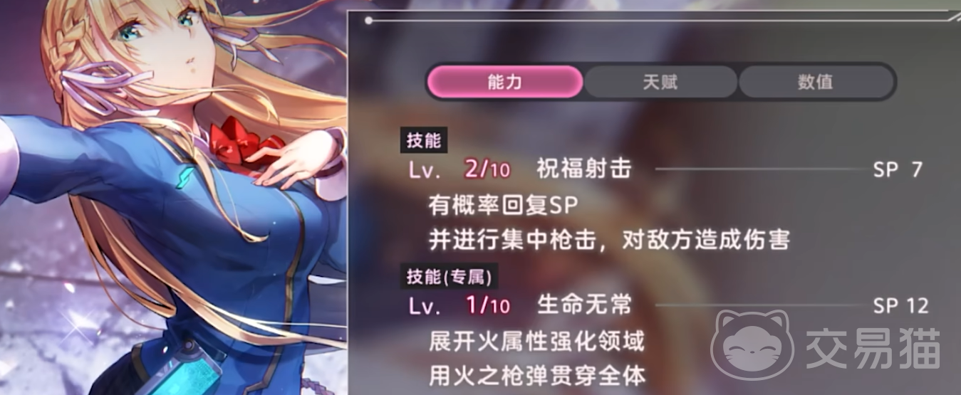 玩家们可以从这个池子之中获取到31A部队不少角色的SS版本。这里面的角色绝大部分都是很不错的,接下来便为大家重点介绍一下。首先介绍的第一位就是我们的主角茅森,她在这个池子之中是一位火属性的角色,本身的属性参数很高,同时也是非常保值的一位角色。她的技能以斩和火为主,不管是单体,群体还是回复的能力她都有。1技能是一个二刀斩击,此技能是针对单体敌人的,在造成伤害之后还可以恢复伤害30%的生命值,SP消耗为6。