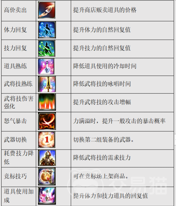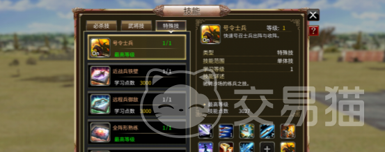 游戏中的特殊技能其实也就是我们通常若说的被动技能,这种技能每个角色都有,而且一旦学习就可永久享受技能效果,特殊种类技能又被划分了31种,每一种被动技能还可以学习的兵种还不一样,必须按照技能规定的兵种学习。