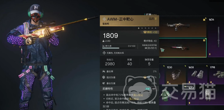 头上戴的是“精准打击”头盔,面罩则是酷炫的“全面通缉”,听起来就挺拉风。手套选了能强化攻击弱点的,专门对付那些不长眼的敌人。鞋子就选择稳扎稳打,毕竟咱是狙击手,站得稳,才能瞄得准射得远。衣服裤子就看词条属性了,偏爱那些能增加伤害的词条,用起来特别带劲。