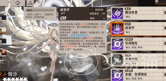 天赋是月壤沙痕,能够记录15%大招期间造成的伤害,之后再用aoe的形式释放,这个只会记录角色自己的伤害。因为恒沙的迷宫环打人是随机的,所以小伙伴们想要出发的话,打单体血厚的boss是最好的选择。