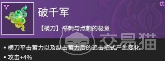 其实要想使用好破千军,关于横刀的平刺,曲步,八字斩,点刺等方法都要逐一了解,这样才能够更好的进行组合模式的攻击,释放出更多连招。而破千军和夺魂单刃这个魂玉搭配使用也会有非常不错的表现。但是夺魂单刃的话对于新手玩家可控度并不是特别高,所以不太推荐新人上手。