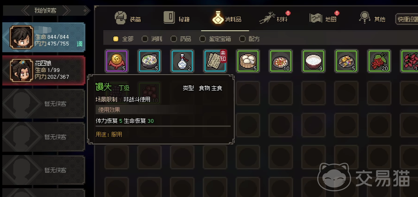 以上内容就是本期小编给大家带来的大侠立志传馒头获得攻略的全部内容了,馒头不仅可以直接通过花四娘的商店购买,也可以跟花四娘交换物品来获得馒头的配方,希望看完本期内容的小伙伴们可以直接进入到游戏内体验一下馒头的制作过程哦。