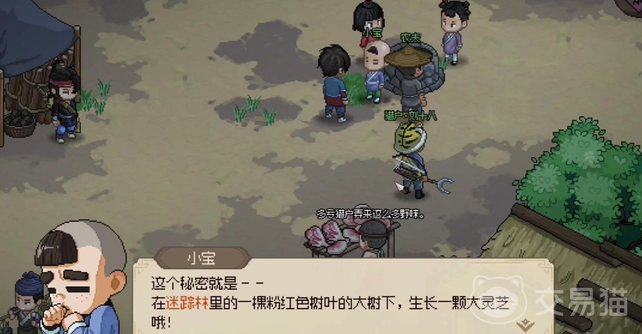 首先,玩家需要前往无名小村,找到一个叫做“小宝”的NPC,这个NPC就在无名村落的水井旁边,通过和小宝对话,小宝会告知玩家一个关于藏宝图的秘密,玩家需要前往迷踪林之中找到一棵灵芝,在寻找灵芝的过程当中,玩家必须击杀几只野猪,在找到了灵芝之后,玩家重新前往无名小村找到“茶铺”,茶铺之中会出现一个落魄江湖人,玩家将背包中的灵芝赠送给他,就能够获得三张藏宝图了。
