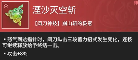 【湮杀灭空斩】是游戏当中一个非常强大的专属魂玉,阔刀这把武器大家都知道威力,其特殊的攻击磐石效果让它一度成为版本之神,当然了,这个魂玉只会出现在地脉之战玩法当中,也是一个神品级的魂玉!十分的特殊!