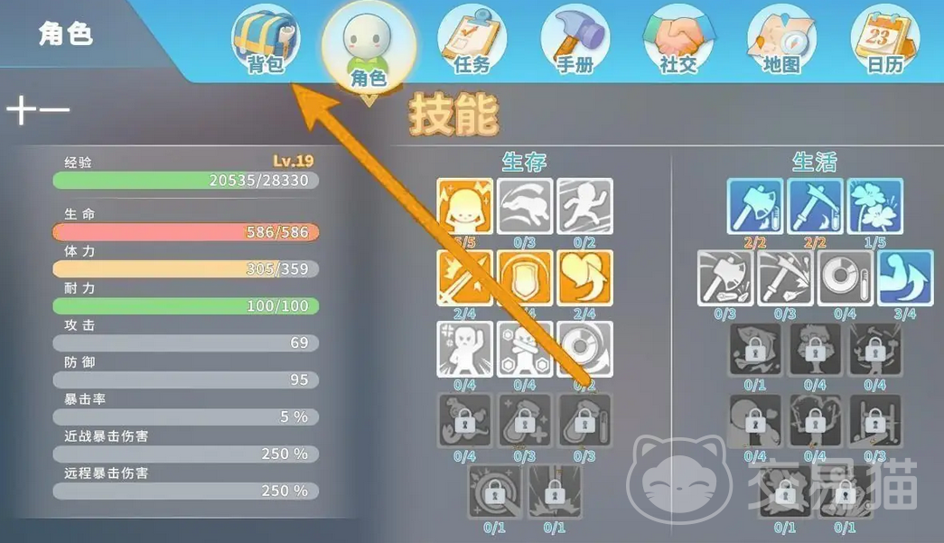 首先,玩家们需要进入游戏,登录人物角色之后便进入主界面。在主界面上找到并点击“背包”图标,以进入背包界面。