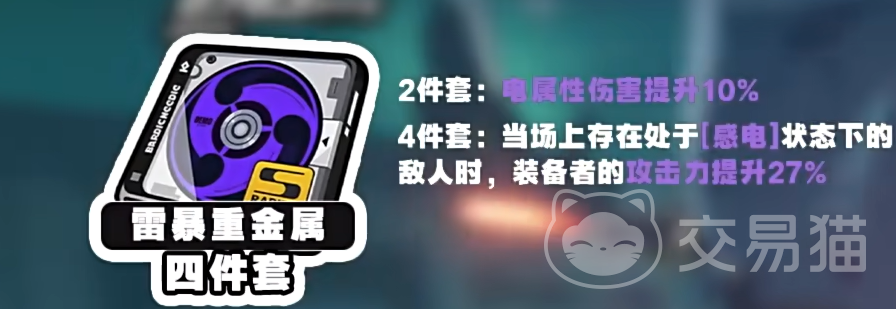 音擎方面,A级旋转机-赤轴的效果相当出色,但由于旋转机缺乏暴击率,为了触发额外感电,暴击率的主要来源需放在驱动盘上。加农转子虽伤害期望较低,但自带暴击率词条,适合前中期过渡使用。在驱动盘的选择上,要有雷暴重金属4件套,啄木鸟电音2件套也是一定要的,接着触发额外感电,4号位只能堆叠暴击率。如果音擎采用旋转机,5号位可以选择攻击力或电伤。