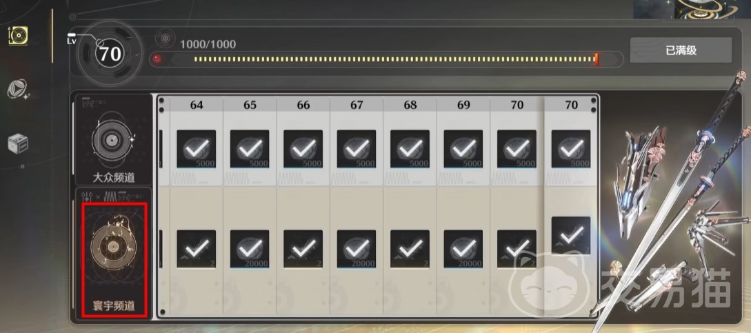 如果是长期玩的小伙伴可以考虑每一期的战令都买一买,给的材料是要比普通战令高级不少,比如说20级的普通战令给6个3000点的中级经验,而下方的寰宇频道则是给7个8000点高级经验。