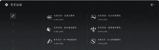 定音技与装备挂钩,更换的话就需要重新定音。而定音石相关的任务会在5-级世界等级突破之后开启。所有装备都是可以对任意武器类型进行定音的。比如说,长枪是可以进行“剑法定音”的,这样就能够让全身装备都给剑提供加成效果,让剑发挥出最大的威力。“律准石”可以在战令里面获得,定音石可以在“侠境”玩法中获取。