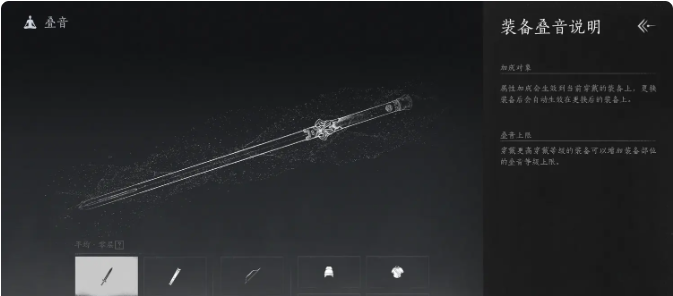 以上提到的10个位置的装备都是能升级的,在游戏中的名词叫”叠音”。装备进行”叠音”是需要使用对应的材料的,消耗的材料名为”振玉”,同时还需要消耗特定的货币。装备升级完成之后,是针对对应的位置进行加成的,不会和具体的装备绑定,也就是说,即使更换了装备,升级之后的属性加成也会保留下来。而“叠音”是有上限的,穿戴更等级的转隔壁,就能够将装备部位的升级上限提升。