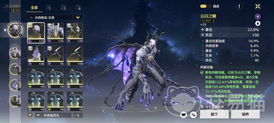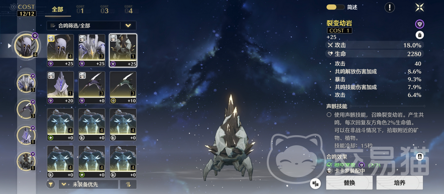 随着玩家等级提升至30级后,声骸的搭配可以调整为浮星祛暗五件套,该套装能够显著增加衍射伤害的加成效果。至于cost等级,推荐配置为4、3、3、1、1。此外,在不同级别的声骸选择上,建议三级声骸优先考虑光属性攻击力,四级声骸的主词条则应侧重于爆伤或暴击,而对于一级声骸,主词条选择攻击力便已足够。