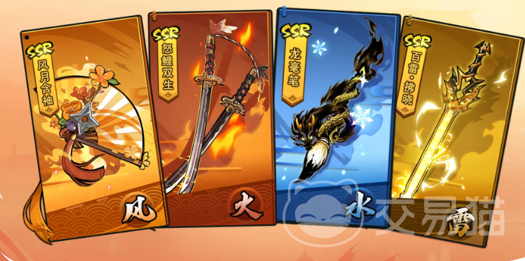 之后大家会看到一个ssr武器免费四选一的活动,这个活动中会给到风火水雷四种属性的ssr武器,大家可以在其中任选一把来使用,这个选择主要看大家有什么角色,或者是能用30连抽到什么角色。