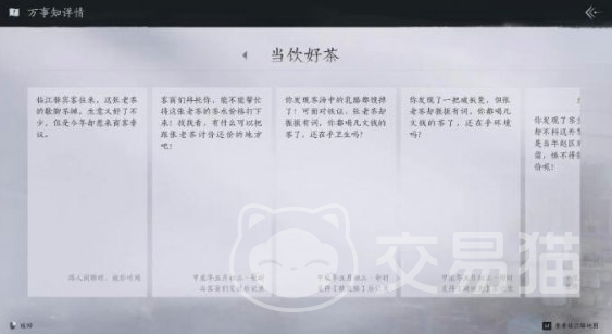在燕云十六声这个游戏里小伙伴们是可以自由去到很多地方,为了让大家体验感更好,给小伙伴们增加了很多奇遇探索的玩法,不知不觉就会触发,那燕云十六声当饮好茶任务怎么做呢?很多小伙伴都不知道该如何完成,下面简单的给小伙伴们分享一下,先要先触发才可以去做。