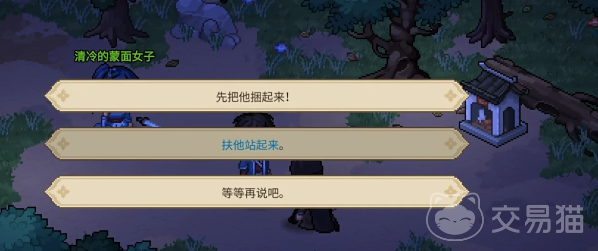 在进入游戏之后,我们会发现一个女捕头被一个黑衣人给打翻在地。这个时候会有选项,玩家们可以选择扶起女捕头,然后将女贼给绑了,之后玩家们来到破庙,这里面有着四个选项,这里是前期玩家们的一个重要选项,我们需要选择第三个回春术的秘籍,这个对于玩家们前期开荒有着很重要的作用。
