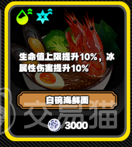 第五个值得推荐的是白碗海鲜面,白碗海鲜面的特点就是可以将生命值上限进行10%的提升,而且还可以加成冰属性伤害,可以让冰属性的伤害值再提升10%,目前它的售价是3000银币。其实绝区零当中这些食物的整体售价价格并不高,而且在游戏当中还会对各种不同属性的角色进行相应的技能加持和生命值上限的提升。