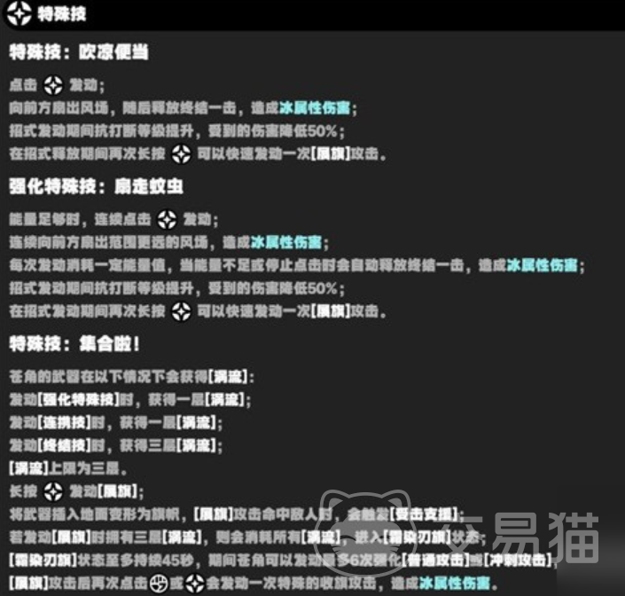 一般苍角的核心技能加点之后,特殊技能也可以适当的加点,毕竟苍角在战斗的过程中也会适当的使用特殊技能,而苍角的特殊技能在战斗中,可能会造成大量的伤害,并且能够产生其他的效果。其实苍角的特殊技能主要是造成冰属性的伤害,另外苍角要是使用特殊技能的话,能够有效的提高生存能力。