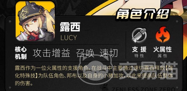 露西虽然是个支援位角色,但是她却有着不错的输出,因为她的技能之一就是可以释放出几只小猪来协助战斗。而她的支援效果则体现在小猪爆炸的时候,会为角色自己、小猪以及每个队友提供一个攻击力的增加BUFF。而这个效果对于很多的比较缺伤害的队伍来说,正是他们所需要的,而露西的获得难度又没那么大,因此就会有很多人使用露西去作为队伍的支援位啦!