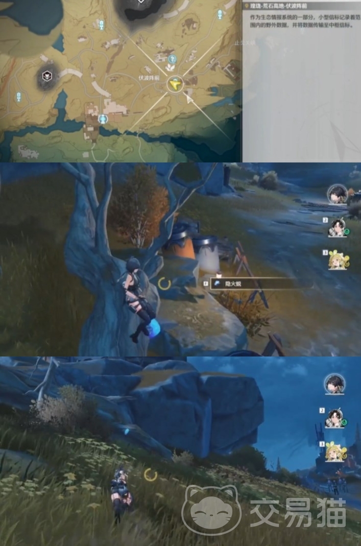 打开地图来到潮生崖正下方的那个小型信标,落地后地图左上角,在树桩附近就有1个。然后继续往地图左边走,在主干道旁的树桩那里还能再找到一个。