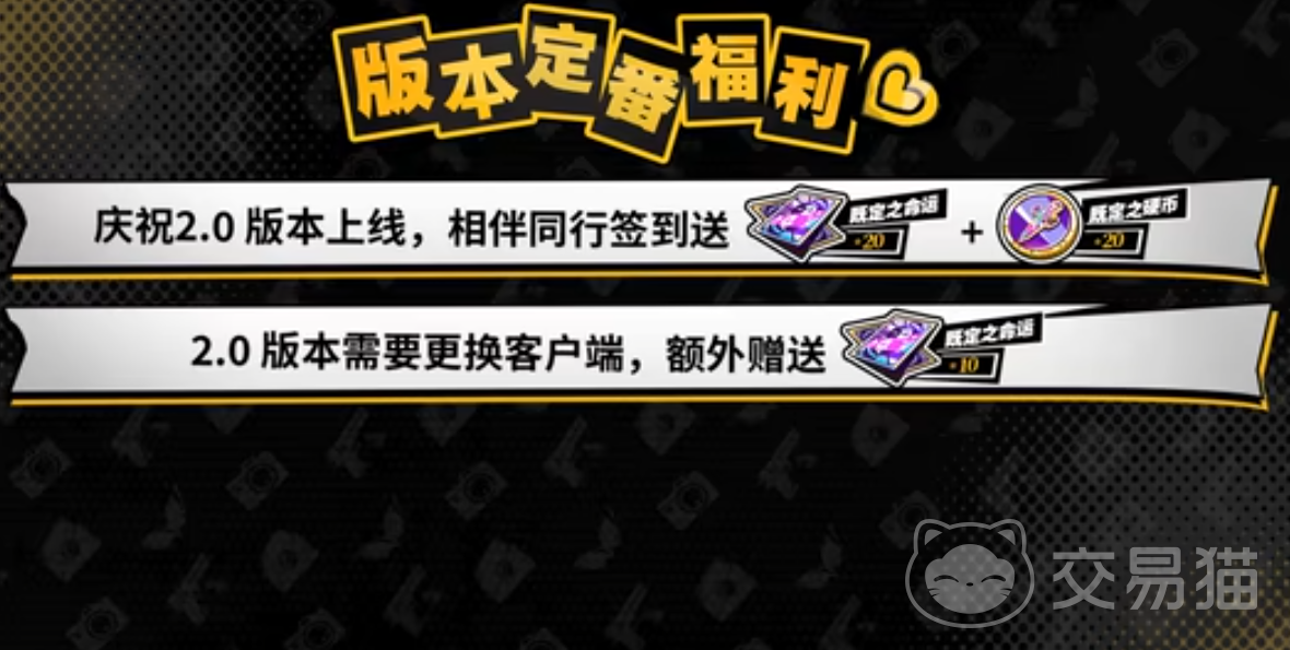首先来给大家介绍下福利,为了庆祝2.0版本,只要上线签到就能得到20既定之命运与20既定之硬币,版本更新礼包加上心之海和乐园的赛季结算总共玩家能得到1600的异界晶珀,如果完成版本庆典活动任务还能再加1000异界晶珀,完成对新主线宫殿的探索也能得到650异界晶珀加大量的未来之命运。