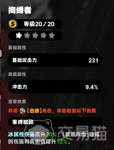 另外如果没有拘缚者,选择珂蕾妲专武同为S级的燃烧齿轮效果也是相当不错;高级属性也是冲击者,被动没有普攻伤害,但增加了回复能量。由于特殊技的打断效果,增强了防守能力。