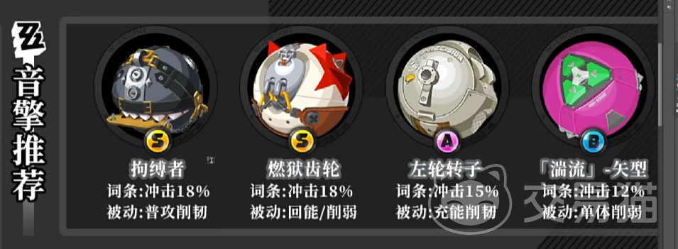 如果是平民玩家或者早期过渡,选择B级音擎湍流-矢型,被动是削弱单体敌人,可以凑合着先用。