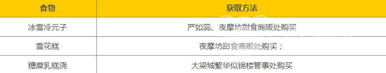 比如说冰雪冷元子可以到严如蕊以及甜食贩子进行购买,同时甜食贩子还可以出售雪花糕,能提升角色的整体生命值,基本上位于夜摩坊,最后一个甜食糖糜乳糕浇,需要到前往大梁城,到繁花似锦的楼管处npc进行购买,价格大致都是很便宜的,就是卖了之后都需要进行一天的刷新。