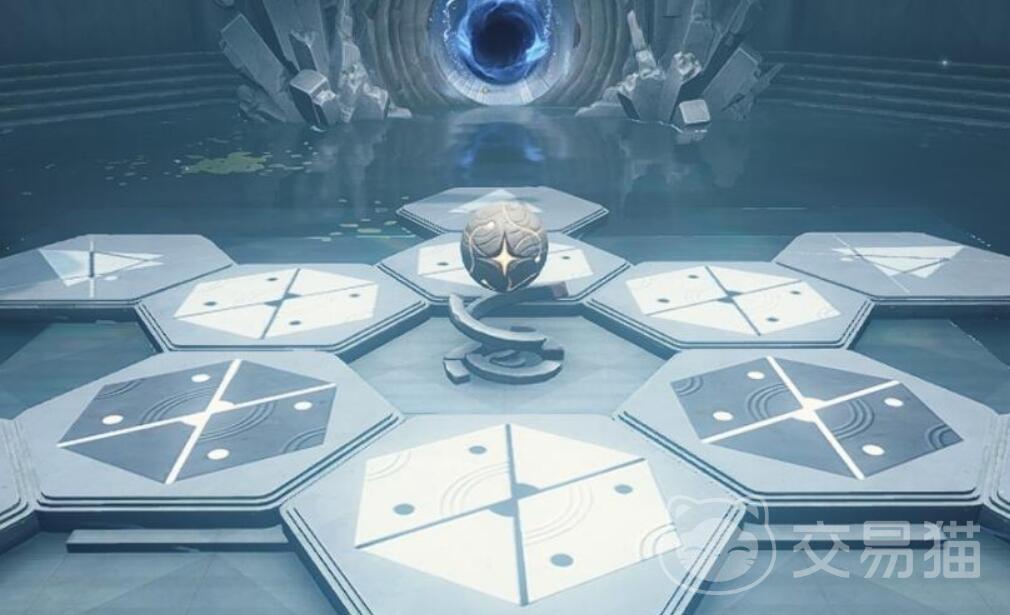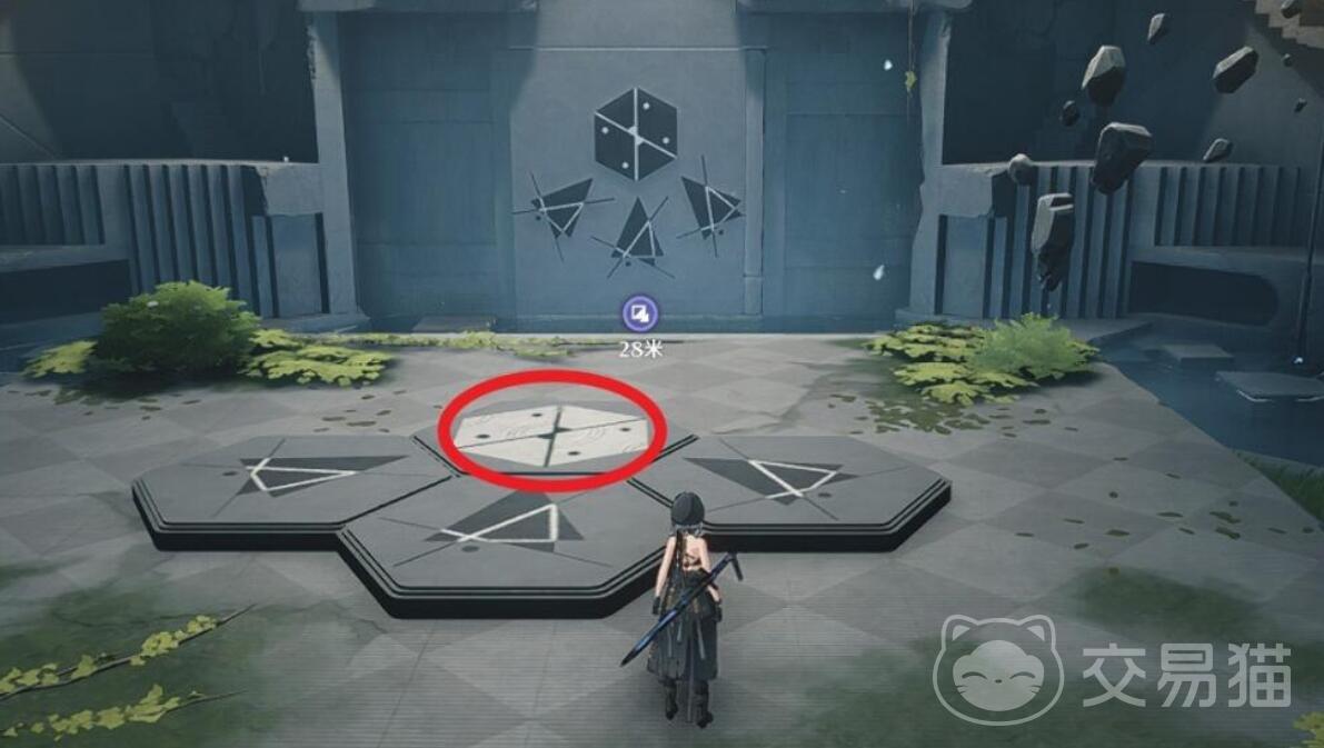 1.大家在进入这个副本后,可以看到下图所示的大门,上面会显示一个黑色的图案,根据提升移动到白色地板处,操控角色跳起并砸下来,直至白色部分的图案与大门一致,就能开启大门。