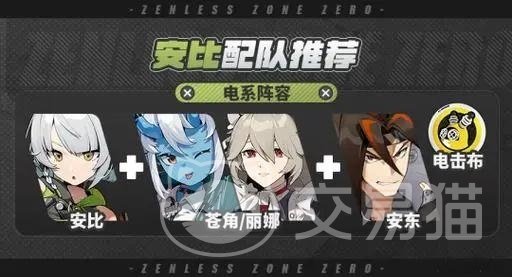 在这一套阵容中,所有的成员全部都有电属性,为此三人也将会触发团队的同属性加成,攻击力会直接翻倍,安比做为负责主要输出的角色在开场之后可以利用自己的技能先打一套让敌人直接被打到失衡,随后格莉丝利用异常技能将敌人的防御打破,而在这时,丽娜就可以利用自己的穿透增益来提高格莉丝异常产生的伤害,如果没有格莉丝的话,我们可以选择安东。