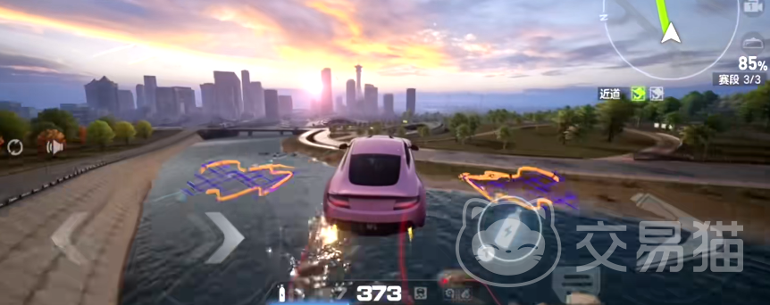 邻近终点的时候也是,有足够氮气的话不用按照指定路线跑,直接穿过花坛飞过护城河,油门全开冲向终点。