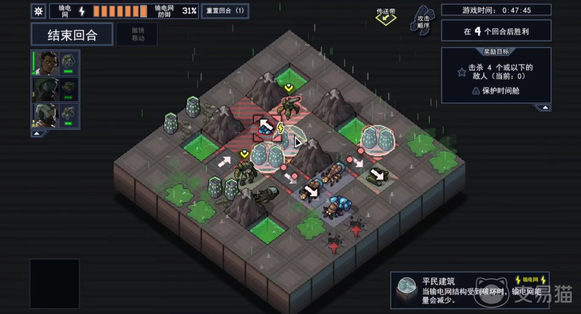 还有一个比较有特色的地方在于游戏里面有一个时间回溯机制,也就是说即使玩家在游戏里面遭到了敌人的重创,那也没有关系,游戏并不会结束,可以利用时间回溯这样一个机制回到玩家自己想要的关键节点,然后重新布置战略,来挽救自己失败的局面,这样就可以在不同的时间线上面去体验更多的故事和战斗了。