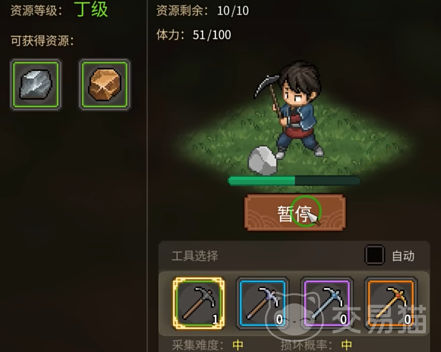 接着玩家们来到采石匠的位置,他的旁边便有一个采石的地方,这里需要进行存档,因为镐子损坏率比较高,玩家们需要在开采的时候保证稿子不会损坏,损坏了就重新读档,直到将8块铁矿石挖出来。