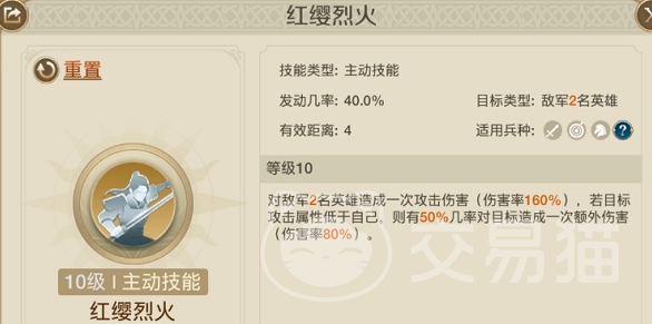 穆兰自身的实力是十分不错的,技能实战效果非常好,有直接伤害,她的红缨烈火,可以直接对敌对阵营的两名角色造成一次性伤害,高达160%,如果对方的攻击属性比自己低的话,那么大家会有50%的几率造成一次额外伤害,伤害率达到了80%。这个技能的发动率不到一半,40%,但一旦发动,那么能够带给敌人的杀伤力无疑是十分强大。