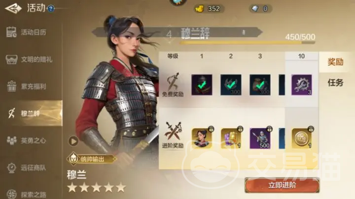 穆兰是大部分玩家都有的,因为她是玩家首充送的角色,在这里小伙伴们首充直接可以得到一个阵容,分别是穆兰,角斗士和狄多,他们三个都是武将,前期小伙伴们不知道如何搭配的话,选择首充以及微氪的形式直接获取这一套成型的阵容,无脑开荒就行了。