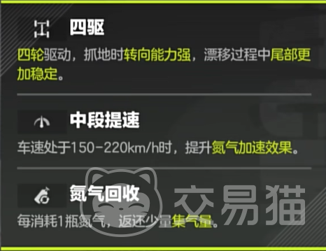 蔚来EP9拥有独特的氮气系统,每次使用氮气后都会返还少量集气,这使得在实战中几乎不缺氮气。同时,这款车的漂移集气能力也非常出色,漂移时能够迅速积累氮气,极大提高了比赛中的容错率和连续加速能力。尽管氮气长度较短,但其频繁使用的特性弥补了这一不足。