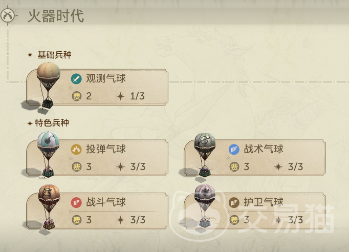 兵种方面的话更是非常多,如近战,远战,骑兵,机械兵以及飞行兵种这五类,而且在游戏中还加入了科技术,玩家可以通过各种资源的收集,随着游戏时间线的推进和更新,不断解锁各种高端的武器装备,但需要注意的是这些武器装备的解锁需要玩家进行资源的收集。目前游戏当中有六个对应时代(远古时代、青铜时代,铁器时代、火器时代、工业时代、电气时代)游戏中的时代演绎常常与真实的世界历史相契合。