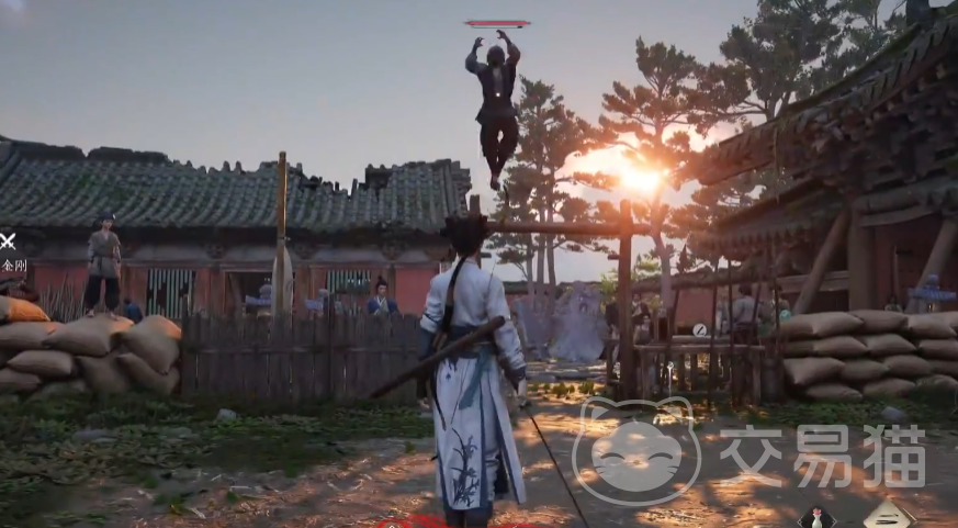 公孙大爷还会跳上木桩,在跳到第四个木桩后,会有一个明显的闪光抬腿动作,然后猛地冲向玩家,这里注意要向左侧的闪躲。甚至还会释放烟弹攻击,注意闪光提示。