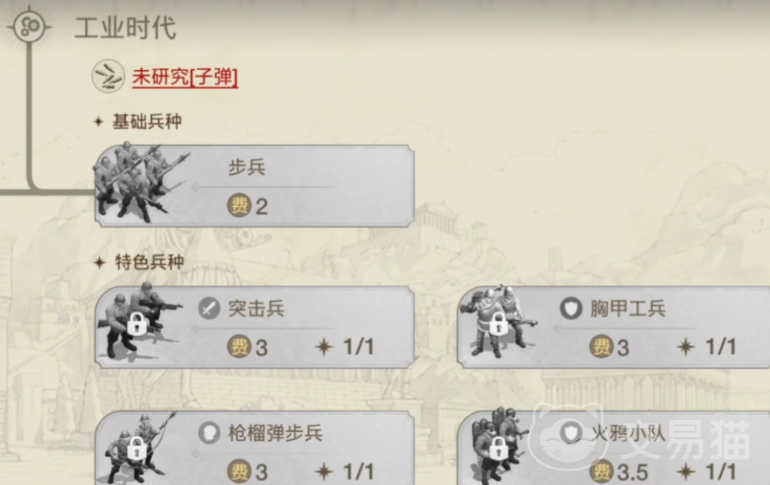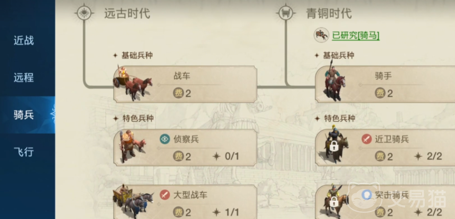 骑兵:近卫骑兵、长枪骑士、突袭骑兵、虎爪一代