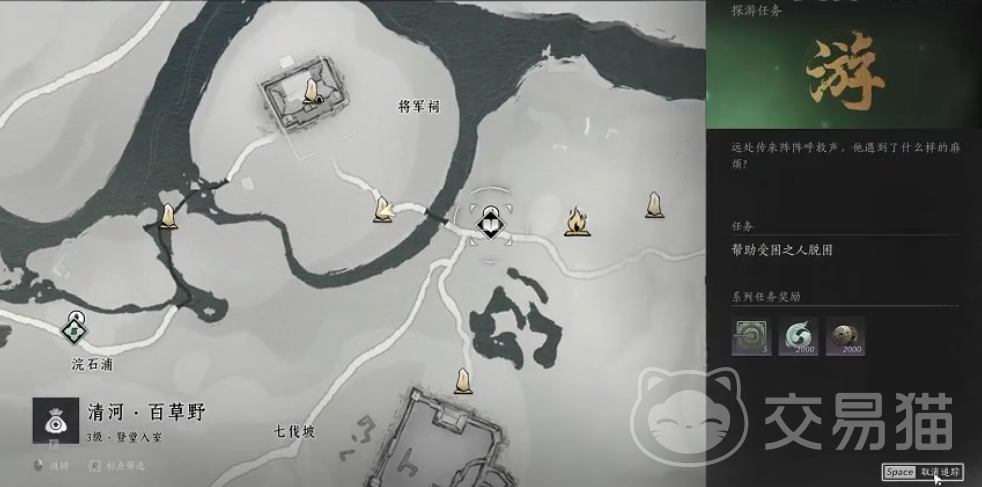 首先第一个方法就是去做开局的时候,系统给大家的一个快速拥有武学的一个任务,首先是来到下图的位置,然后将NPC从石头当中解救出来,之后NPC对话会触发任务,会让大家去抓一只紫色的螳螂,将螳螂交给这个NPC之后,就可以四选一选择一个自己想要的武学了。