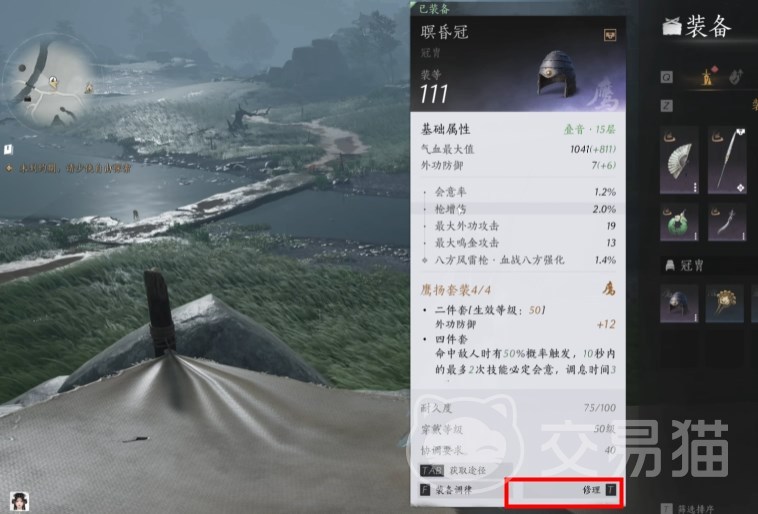 有的游戏里修理装备是要求特点的地点,比如说铁匠铺,但燕云十六声里就方便许多了,直接点按装备最下方的修理按钮,如果是键鼠标操作的话直接按“T键”就可以进入修理界面了。修理会消耗掉一定的资金,耐久损耗越多,装备等级越高资金消耗越大。