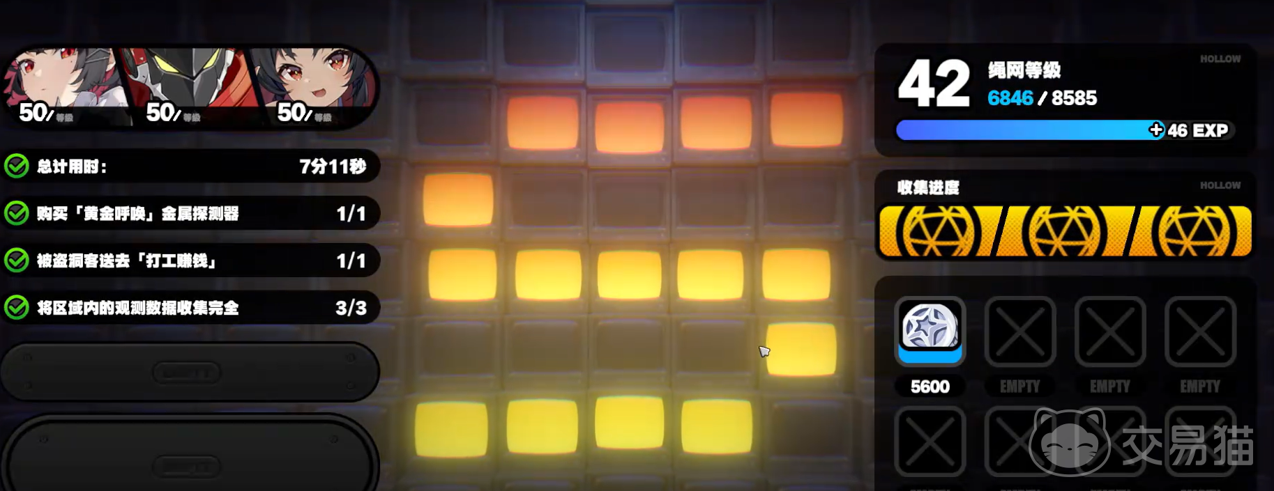 在玩家收集到道具之后就已经完成了前置条件中的一个,剩下的时间里玩家需要避免自己的队伍有角色阵亡,并且需要控制自己的混乱值,当混乱值达到一百之后将会随机刷新一个负面状态,提高了玩家的通关难度也会拖慢玩家的通关速度。