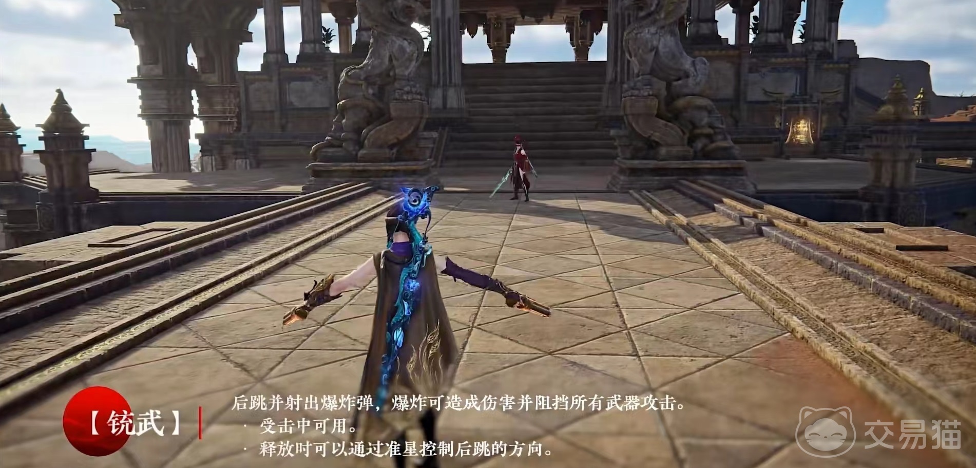 先来看一下三个天赋技能,分别是铳武、铳武突进和铳武精准。铳武释放时向后跳并射出爆炸弹,爆炸可造成伤害并阻挡所有武器攻击,在收到攻击时中也可以使用,释放时可以通过准星控制后跳方向。铳武突进在释放的时候突进距离比较长,并不断向四周射击造成伤害,并阻挡所有武器攻击,突进中可以通过移动准星方式来控制方向。该技能释放的时候视角会朝上会向上推进,也可用于翻越一些障碍物。