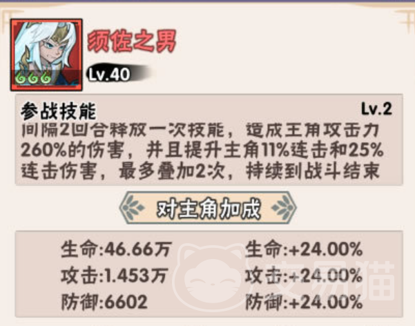 天照的个人属性面板都是比较优秀的,可以很好地承担内队伍的输出核心,有资源的话需要优先进行培养哦!接着就是是佐之男,这个角色的优势可以发挥出主角的作战能力,每隔两个回合就能无消耗地释放依次技能,同时增强主角的连击概率以及额外伤害,这样主角也具备了很强的作战能力,不至于当个辅助角色了。