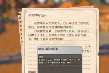 之后就可以在工作台来成功的进行生产,把它交给扎克,可以获得沙漠种植的系统解锁,在这里,会教玩家们来种植沙米,大家需要先在商店中来购买一些肥料,之后回到自己的家园中,然后在工具箱中点击种植的模式,就可以使家园变成草方格。