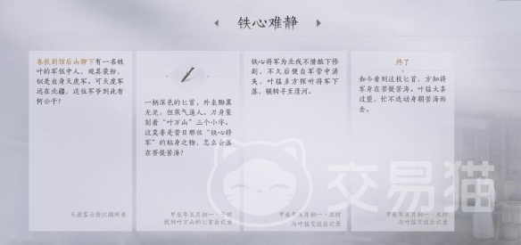 以上就是有关燕云十六声铁心难静全部内容的分享,小伙伴们跟随操作就可以了,首先解锁地图并找到相关的位置去接取任务,把需要的道具取回给NPC之后,基本上就完成了,游戏大致的任务流程都是这样,非常的简单,只要解锁相应地图,后续就很好做了,没事的时候就可以到处探索。