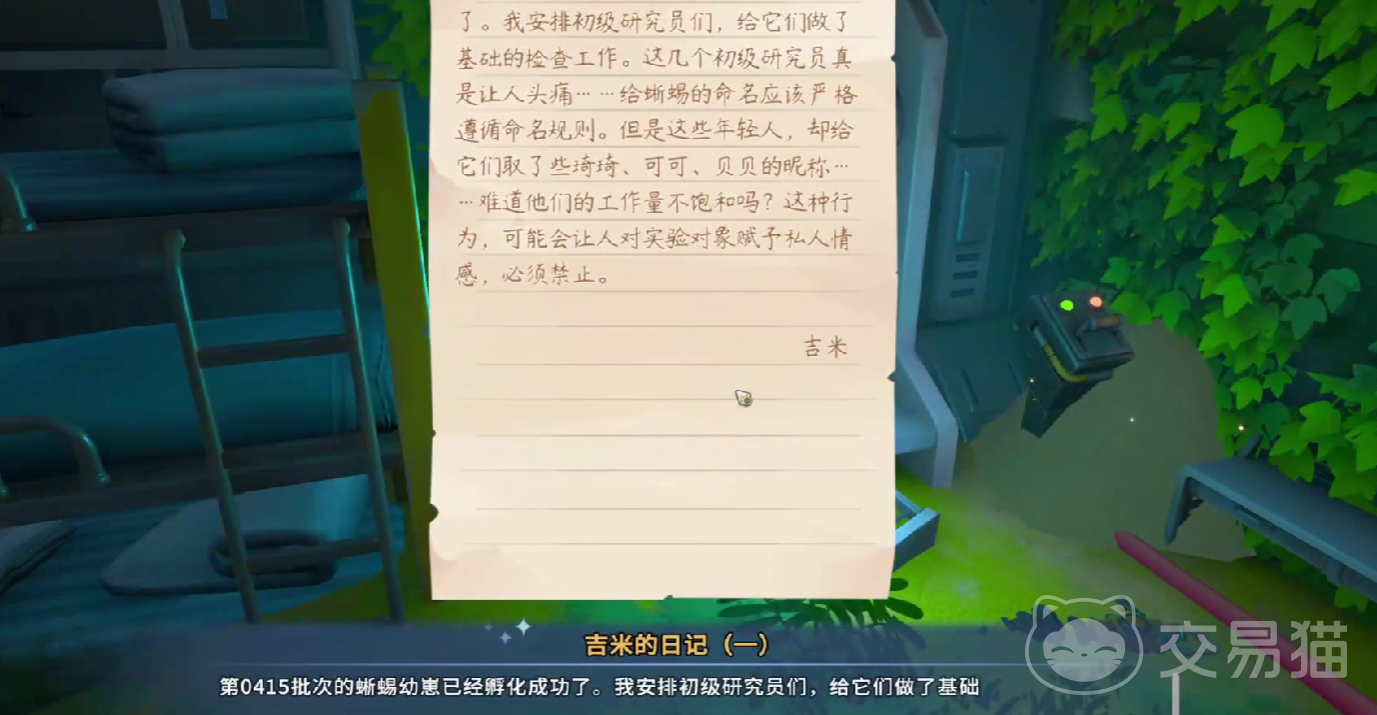 值得一提的是,如果玩家在海底无法分清方位,可以在背包中准备一个指南针, 并且在进入海底之前,率先在船舱之上放置一个储物箱,该储物箱可以帮助玩家进行迅速的补给,在玩家正式进入到海底之后,一直往南边走,就能够看到一个蓝色的能源管道,顺着能源管道一直往中枢房间内走,就能够看到蜥蜴人先前留下的遗迹了,在蜥蜴人所在的房间内,玩家可以看到一本日记本,这本日记本来自吉米。