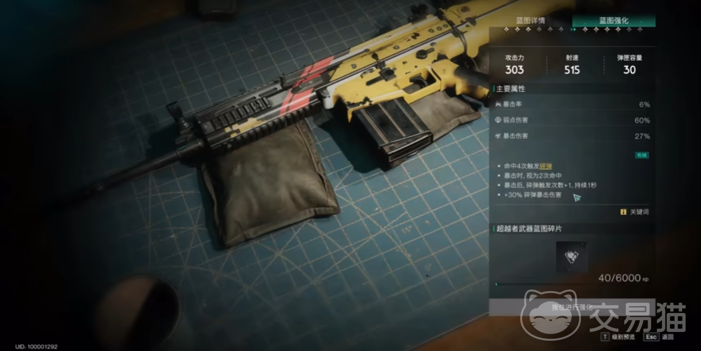1、武器精校选择暴击率,模组方面的话带爆裂弹头。因为这个的武器它可以稳定触发碎弹,所以对最后一期来说,叠这个爆裂弹头是很好叠的,弹夹选择金色弹夹。